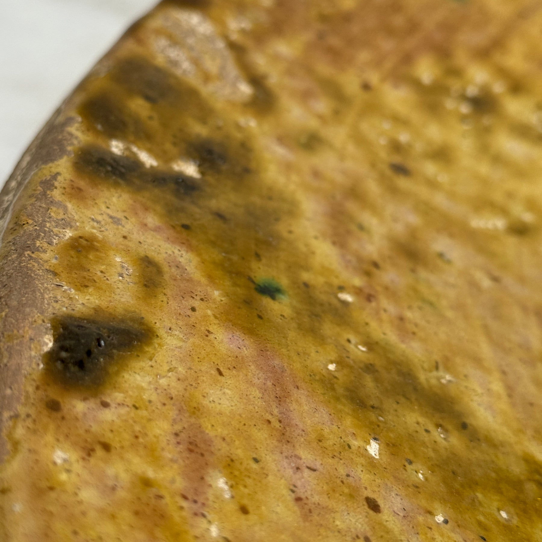 This item can be displated on a large table or kithen island, simply empty to show of the incredible organic glaze or perhaps as a fruit bowl.