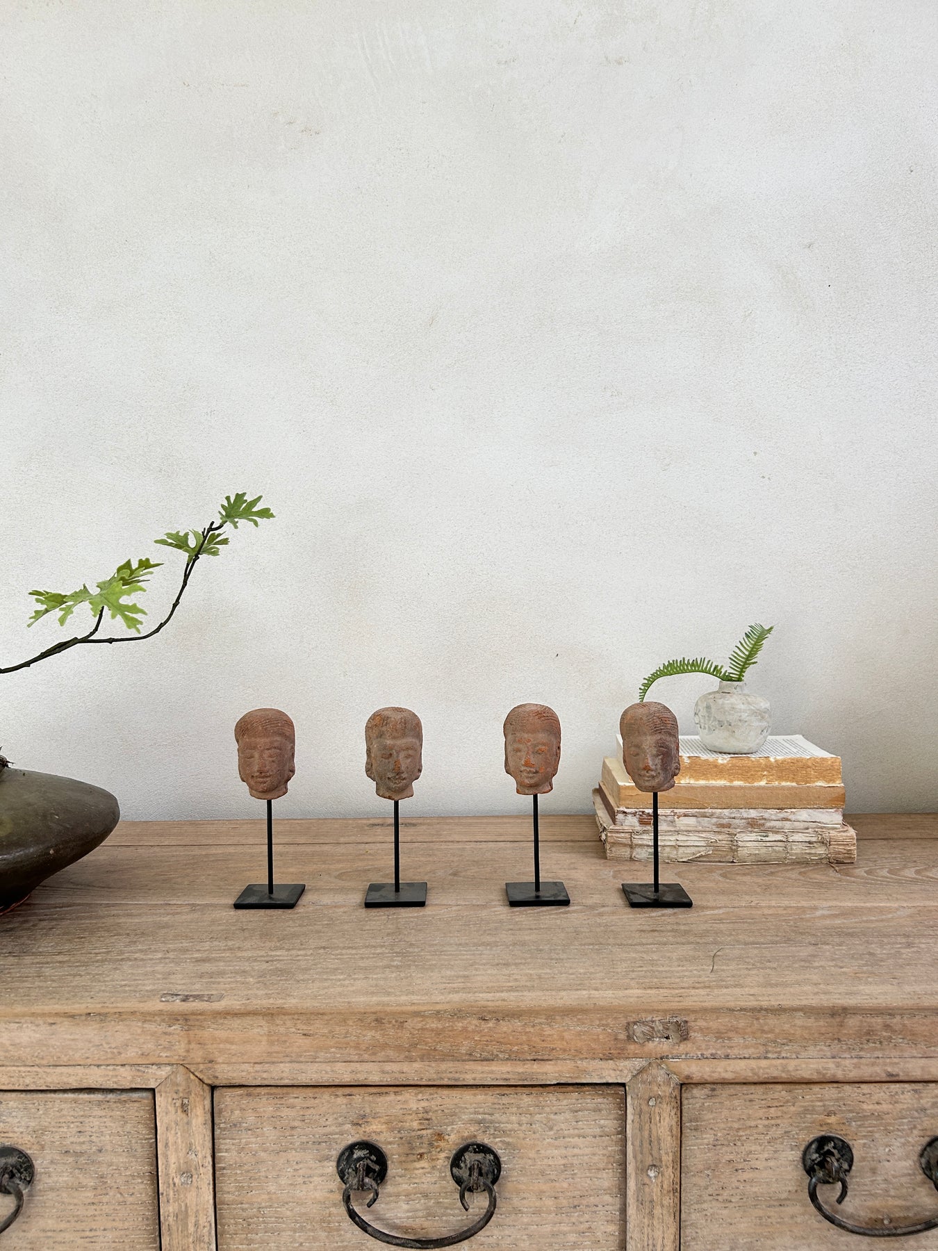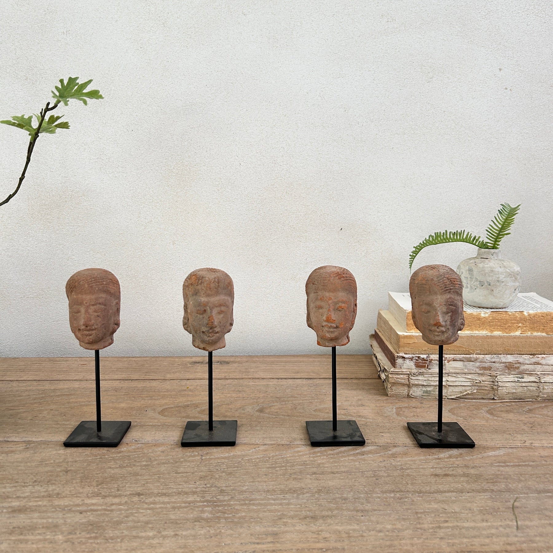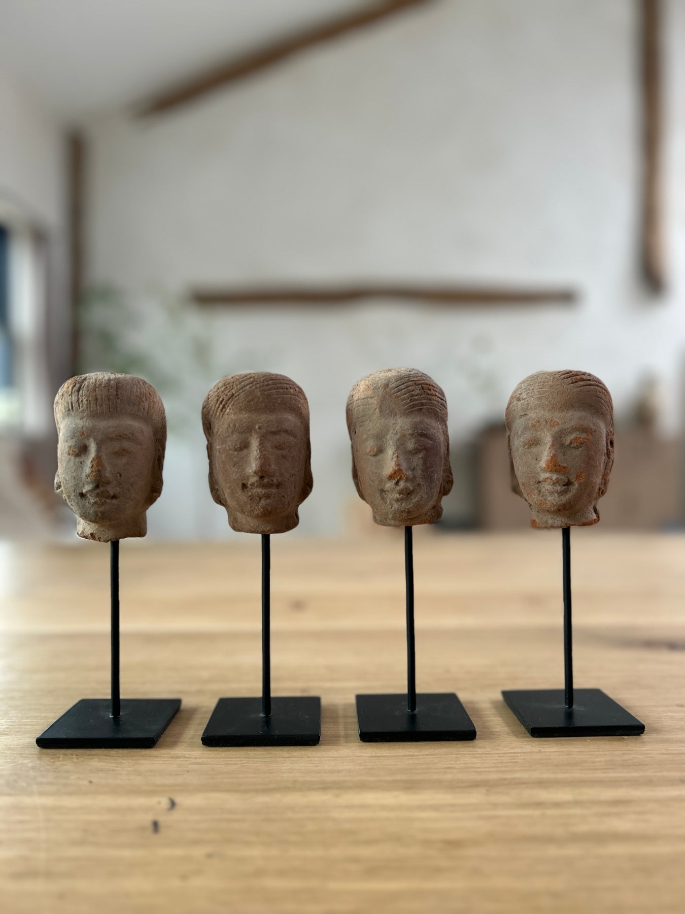 Hand-Made terracotta heads mounted on a sculptural stand, inspired by classical artistry. Each piece showcases authentic craftsmanship with distinctive facial features and weathered patina characteristic of antique terracotta work. The Sita design captures timeless elegance, making it an exceptional statement piece for collectors and interior enthusiasts seeking authentic artisanal sculpture. Perfect for displaying on shelves, mantels, or as a focal point in curated spaces.