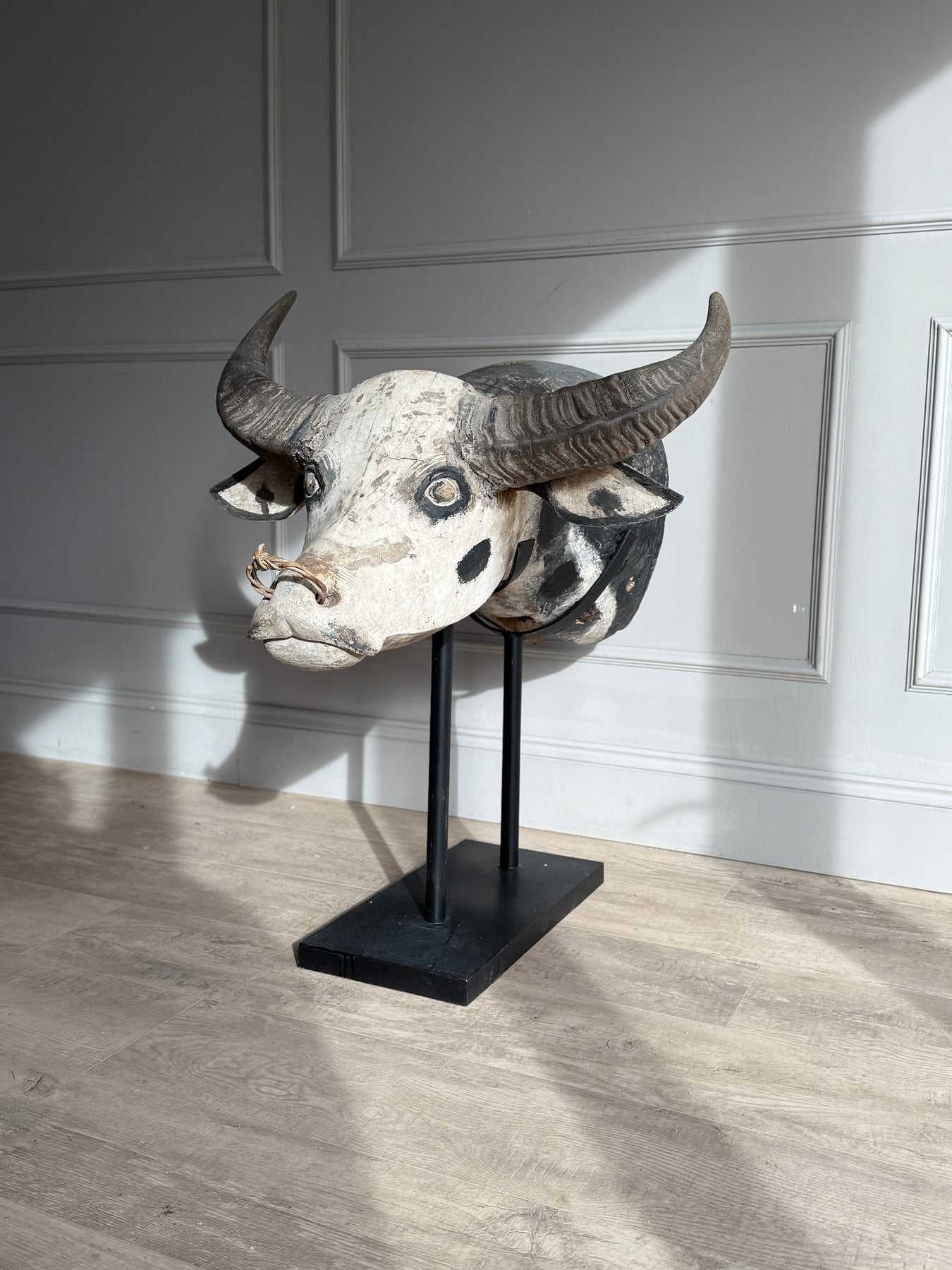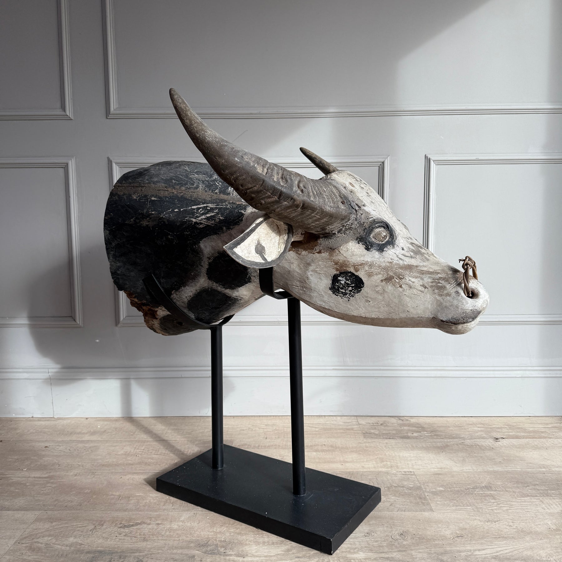 Large Antique Water Buffalo Head Sculpture - Extra large cow head statue