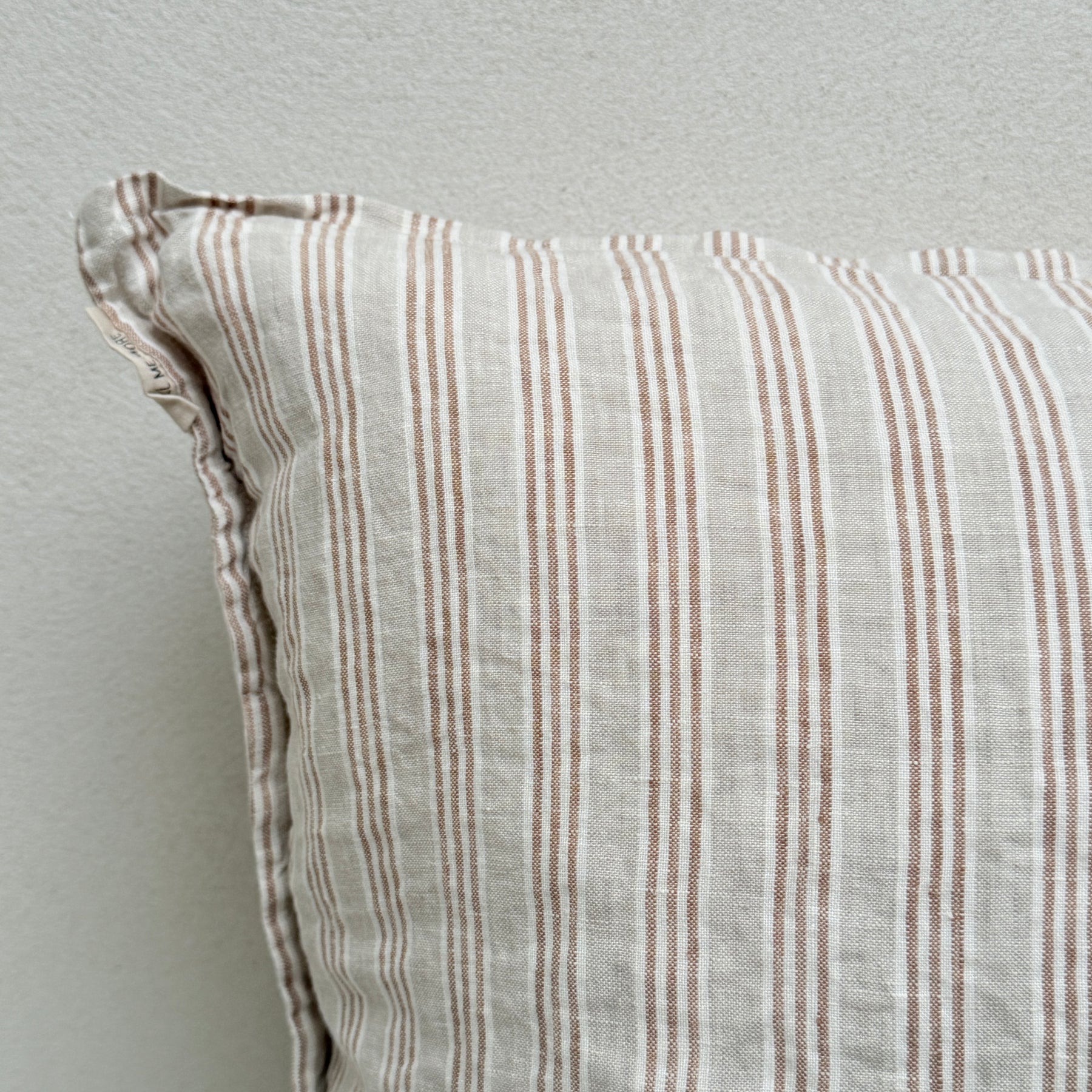 Our pinstripe linen cushion is a classic and perfect for the bed, armchair or sofa.