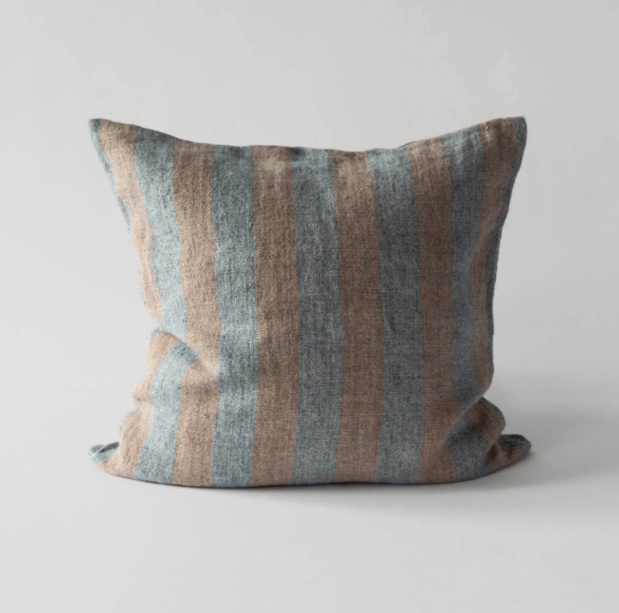 Our wide stripe loose linen cushion is a classic and perfect for the bed, armchair or sofa.