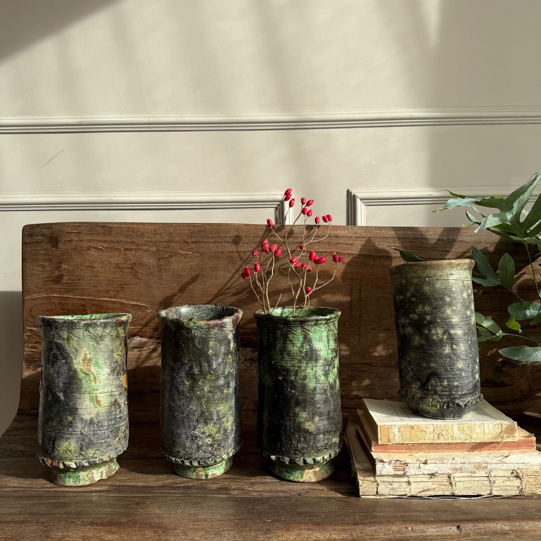 Made in Morocco in the village of Tamegroute this range is characterised by its distinctive irregular green glaze.
