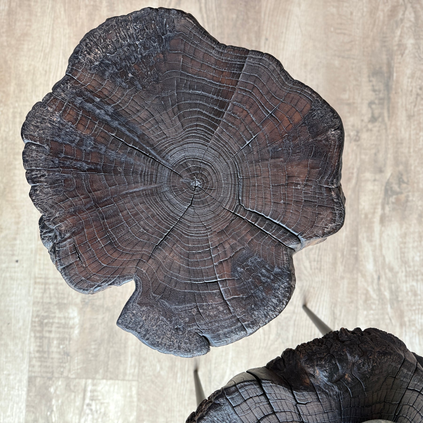 A stunning pair of small side tables made from ancient burr walnut - hundreds of years old and now salvaged and refashioned as a totally unique pair of tables.