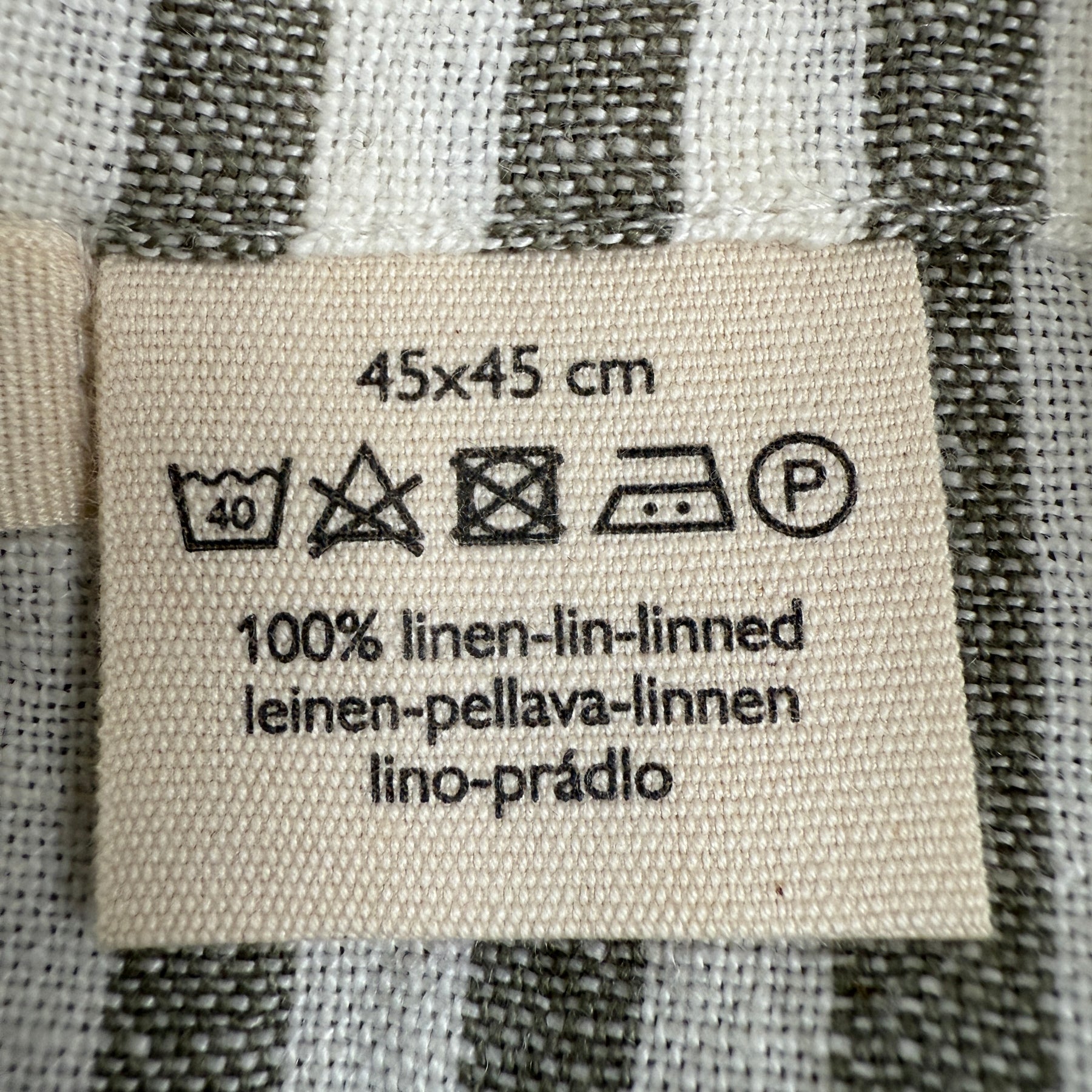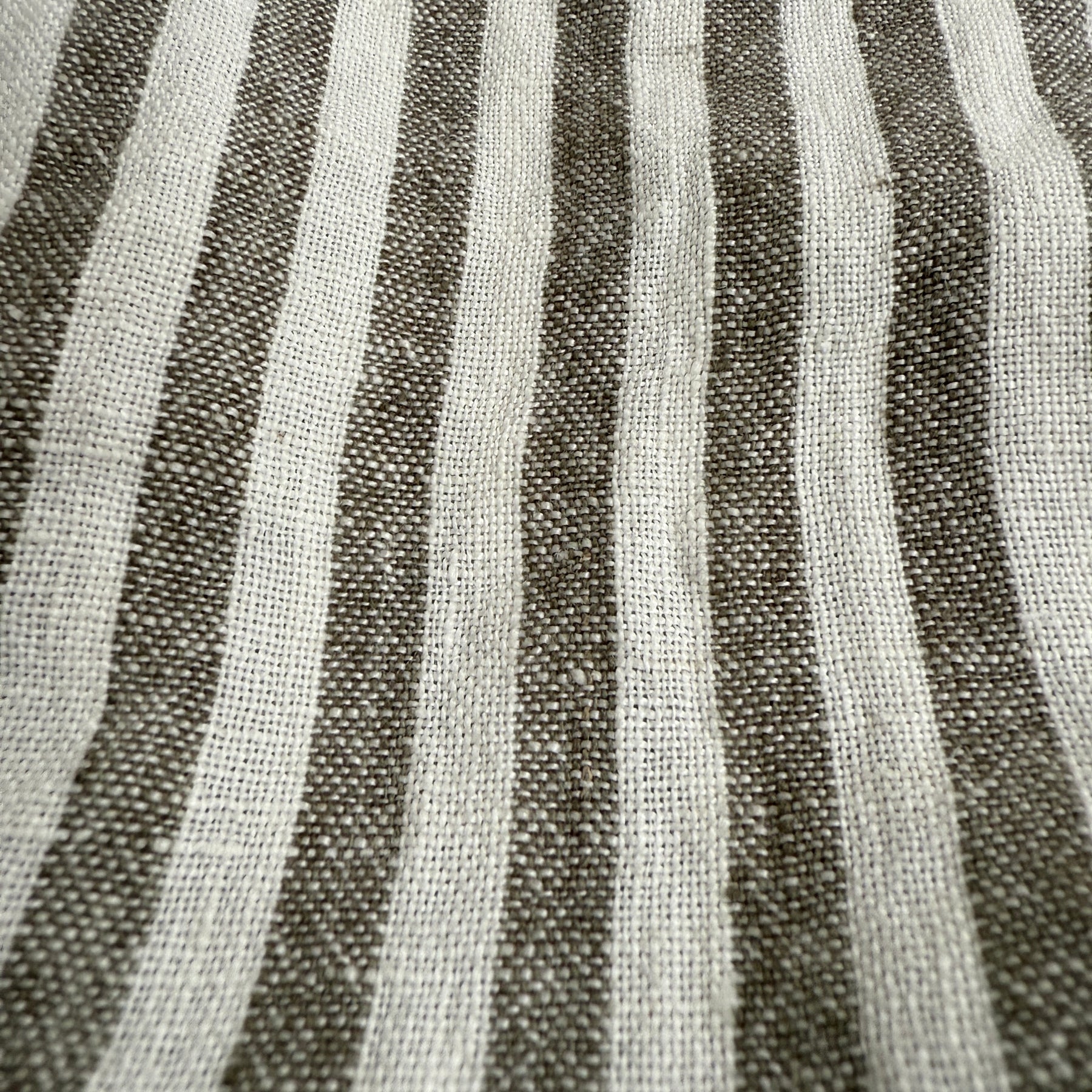 With a classic strip in white and olive green. Made from 100 % belgian linen this luxurious napkin is a stylish addition to your dining table.