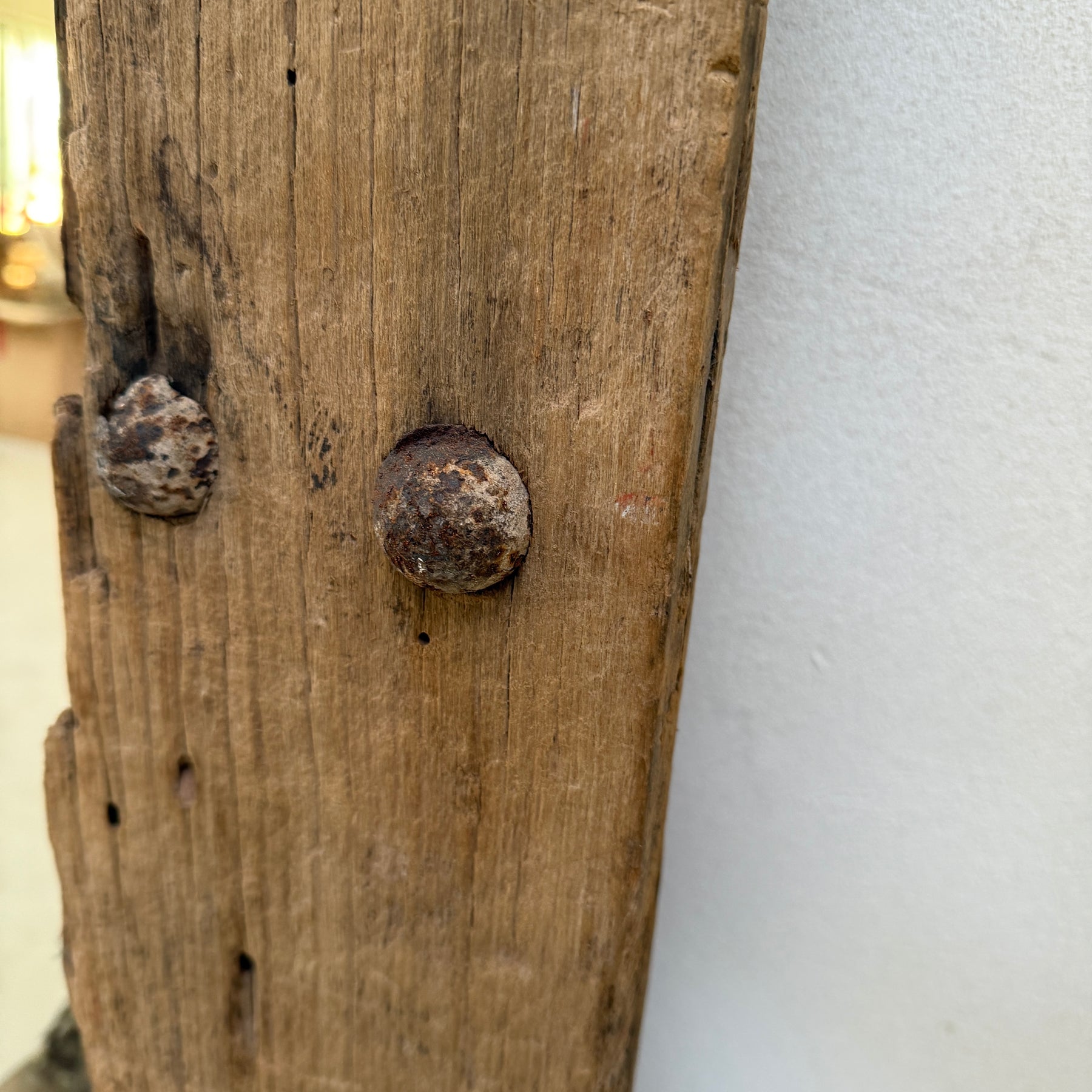 Reclaimed timber mirror with authentic character and weathered patina. This striking piece showcases genuine rustic appeal through its salvaged wood frame, each grain pattern and surface variation telling its own story.