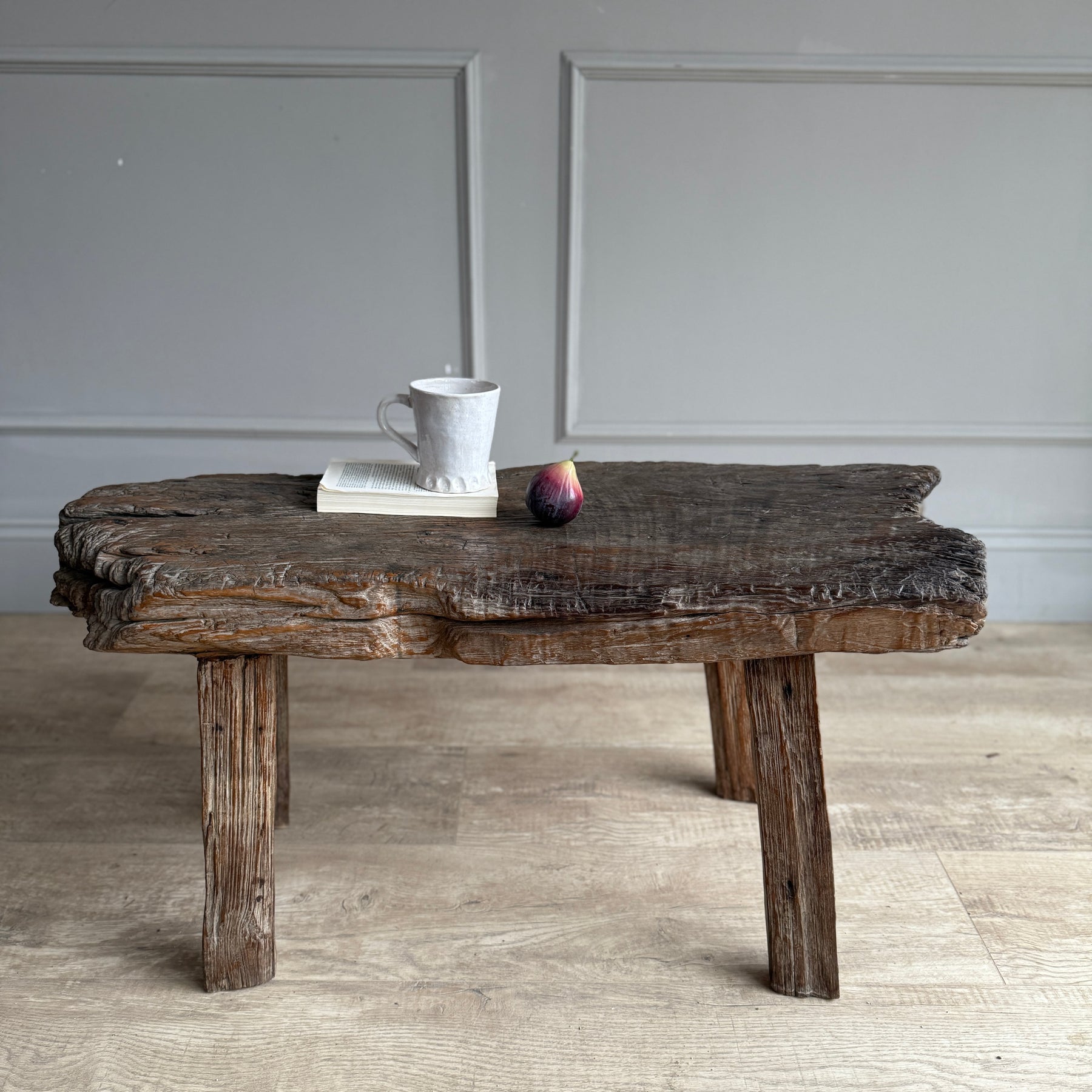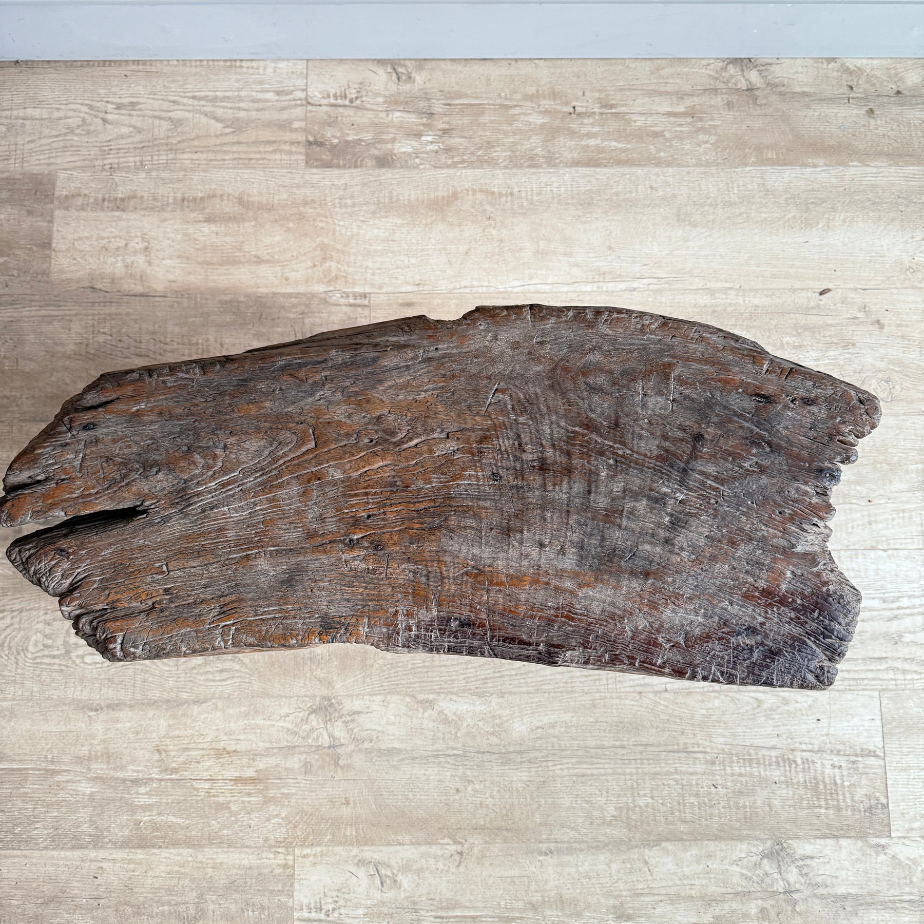A superb small and deep bench hewn from a single thick and rustic plank.