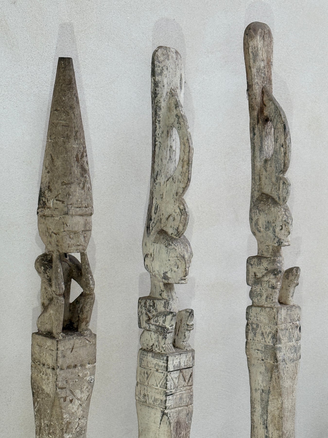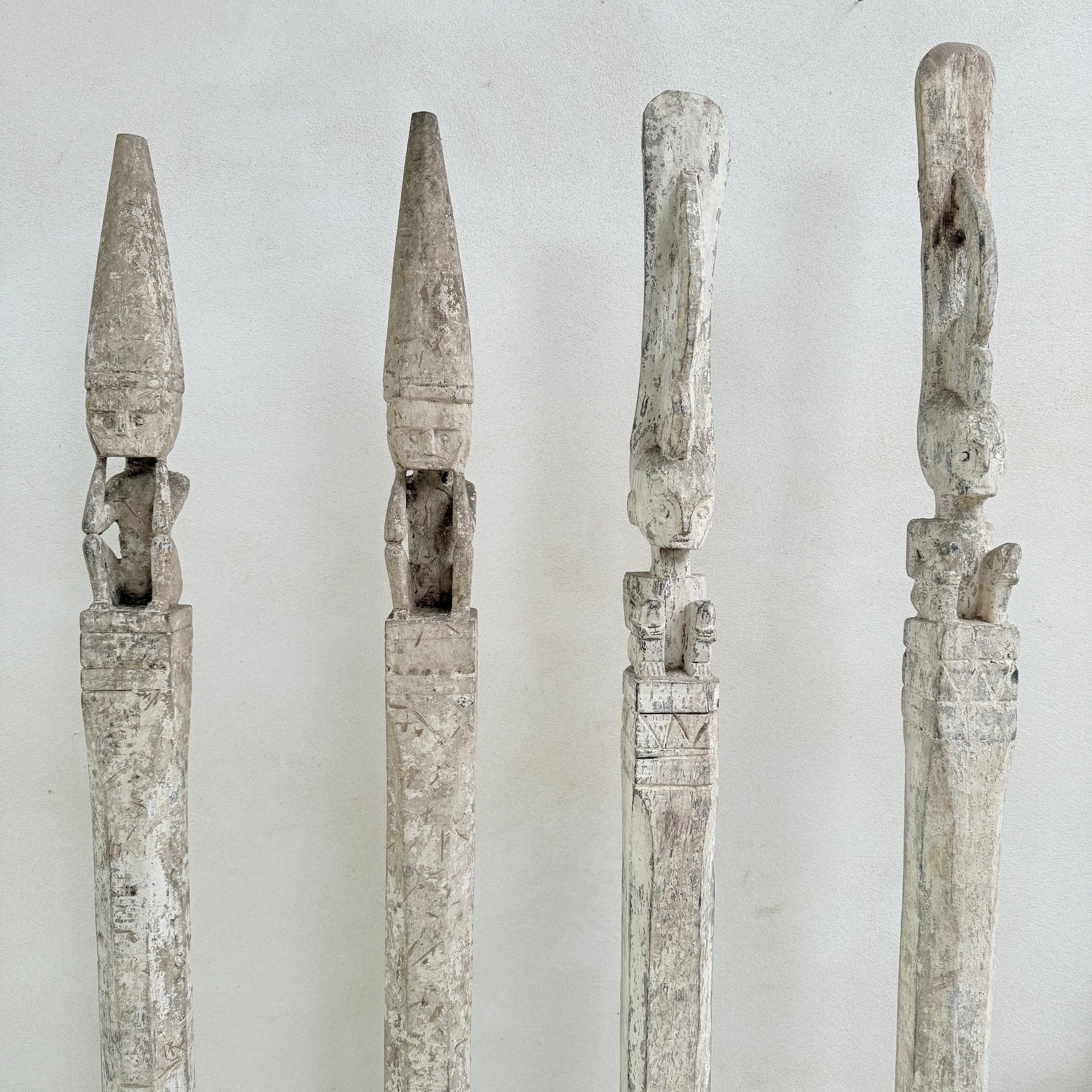 Explore this wonderful Tribal totem pole rustic white patina.