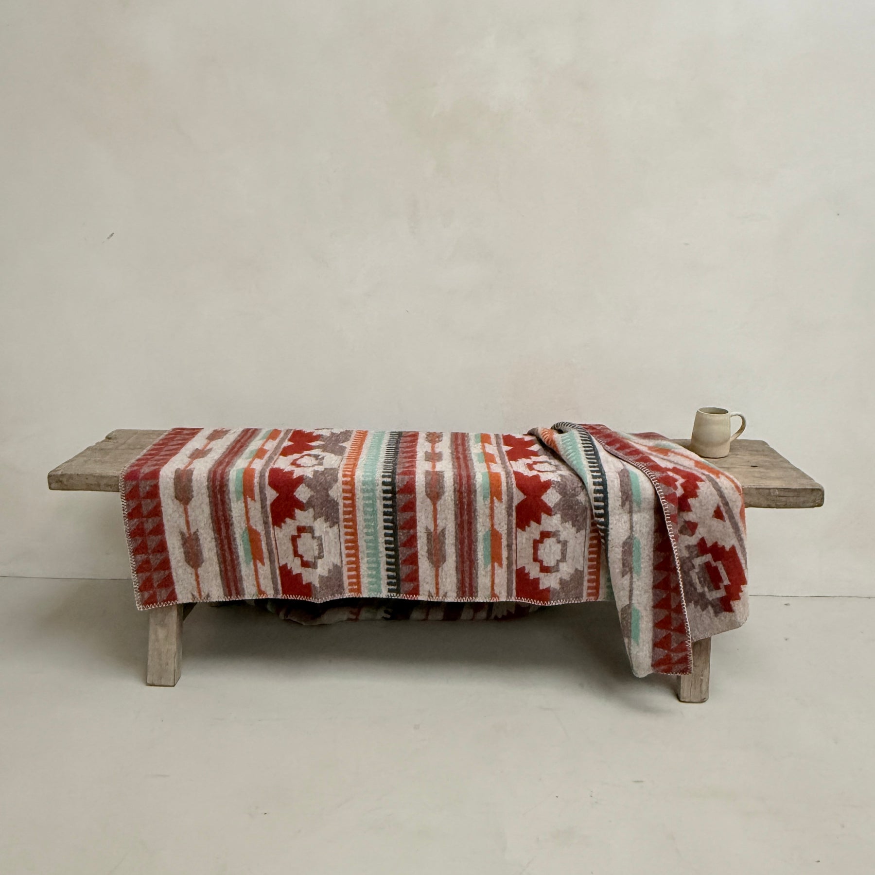 This large lambswool felt Navajo Blanket in cream and Red is the perfect addition to your home for ultimate coziness. Made of 100% Oeko-Tex® certified lambswool, it provides both style and comfort. Perfect for cuddling on the couch or adding extra warmth to your bed.
