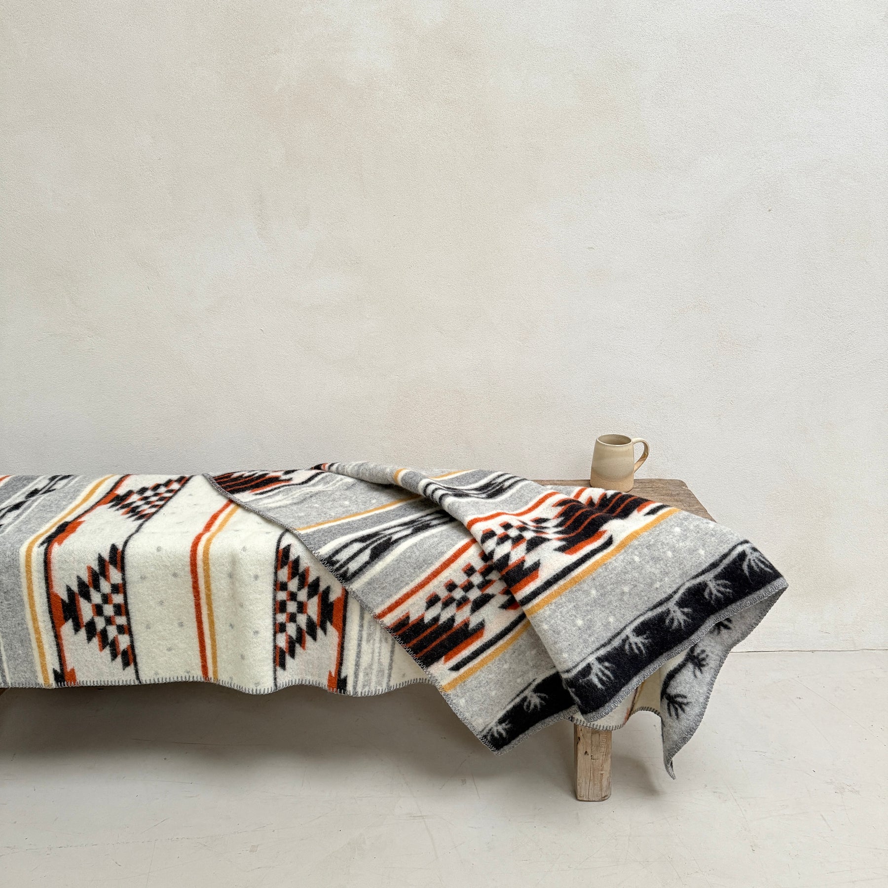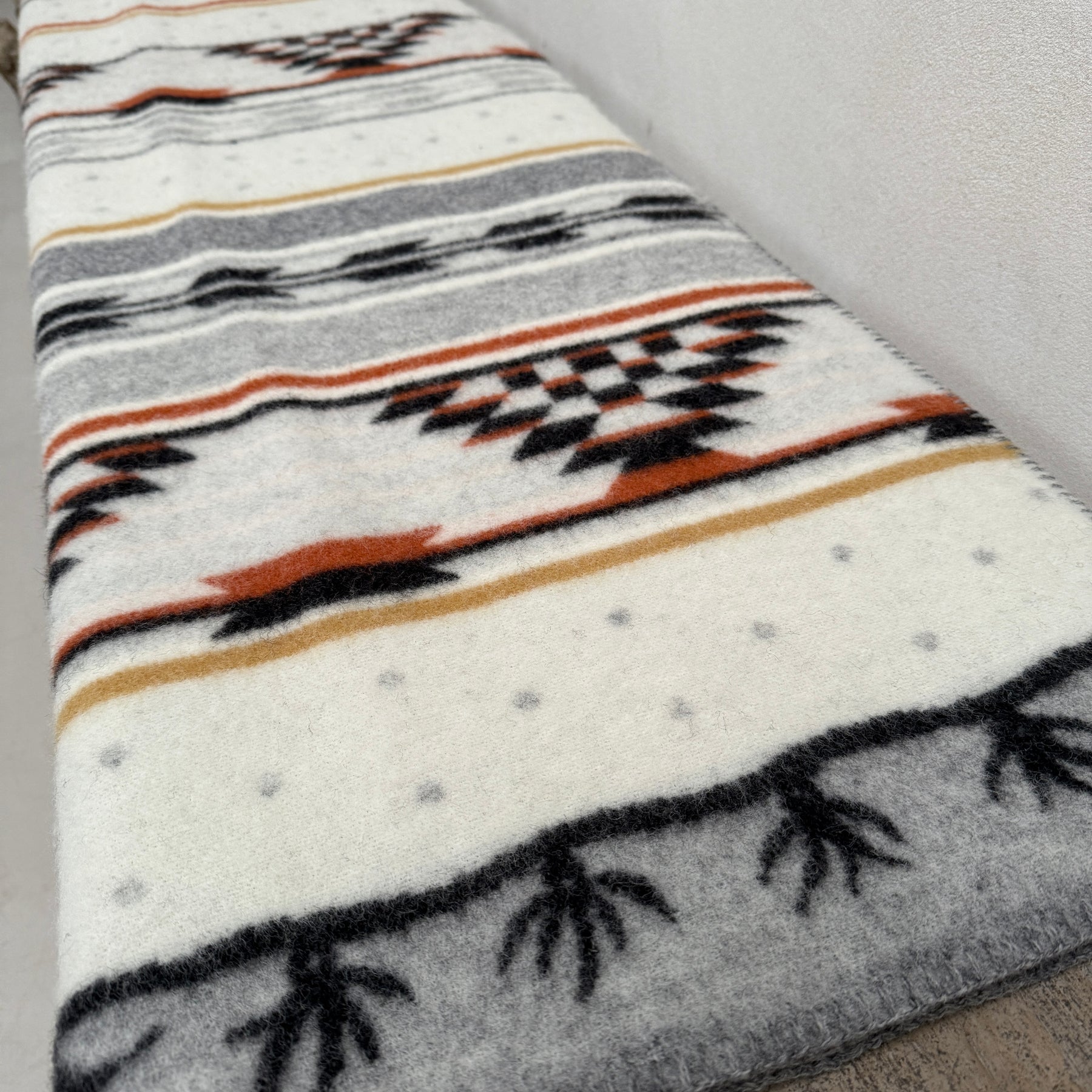 This large lambswool felt Navajo Blanket in cream and grey is the perfect addition to your home for ultimate coziness. Made of 100% Oeko-Tex® certified lambswool, it provides both style and comfort. Perfect for cuddling on the couch or adding extra warmth to your bed.
