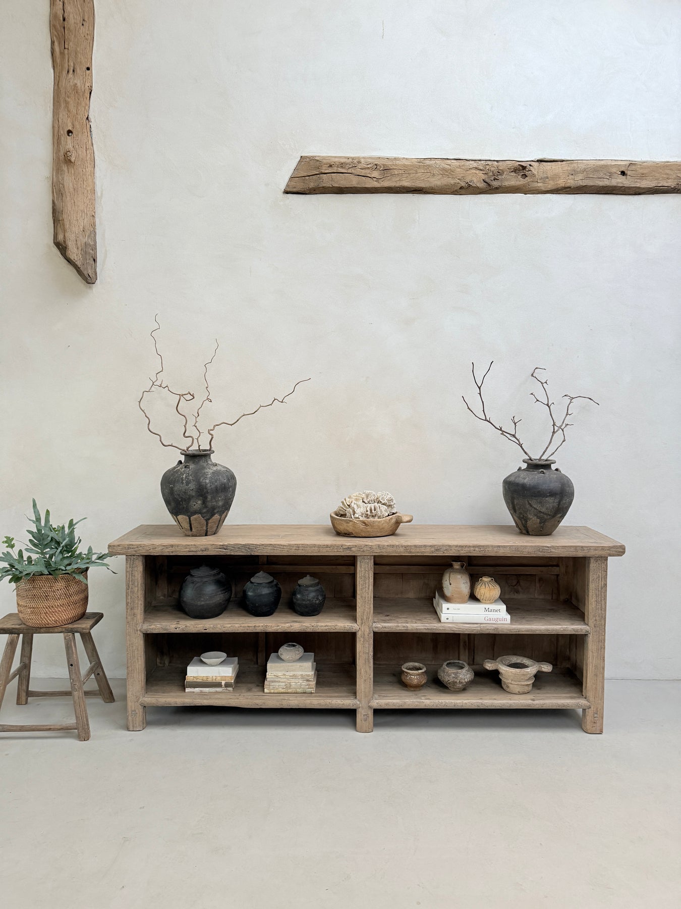 With a stunning aged patina, this item has been fully restored with a clear focus on retaining the original aesthetic of the timber. The artisan restorers have been careful to retain all the character that we love to see in a modern rustic piece. The timbers have been sanded, stripped back by hand and then waxed to give a smooth tactile finish.