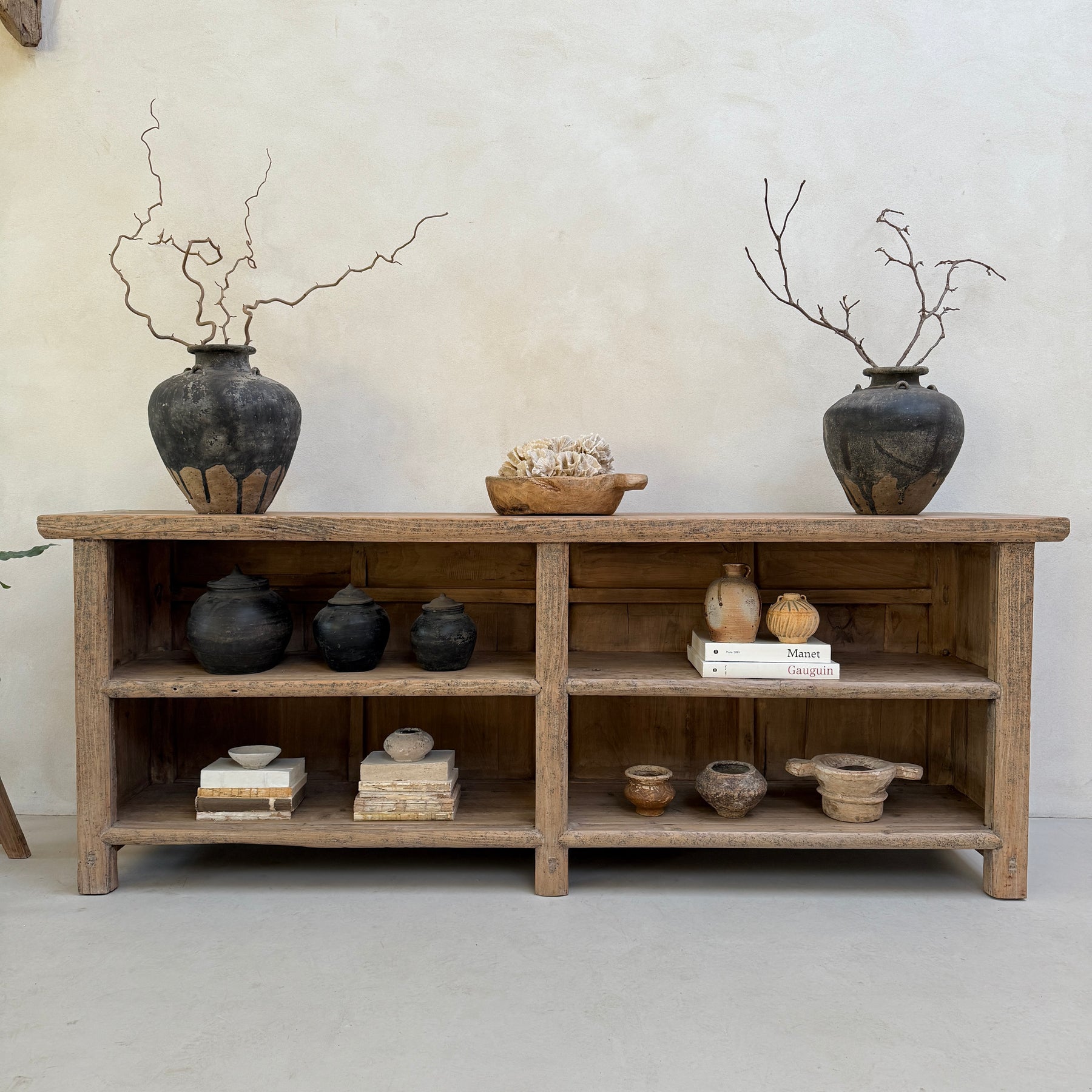 This original antique shop counter offers a unique statement storage solution for your home. Fill this unit with treasured serving bowls, linen and glassware. With its deep open shelves, this counter provides a wonderfully stylish storage solution.