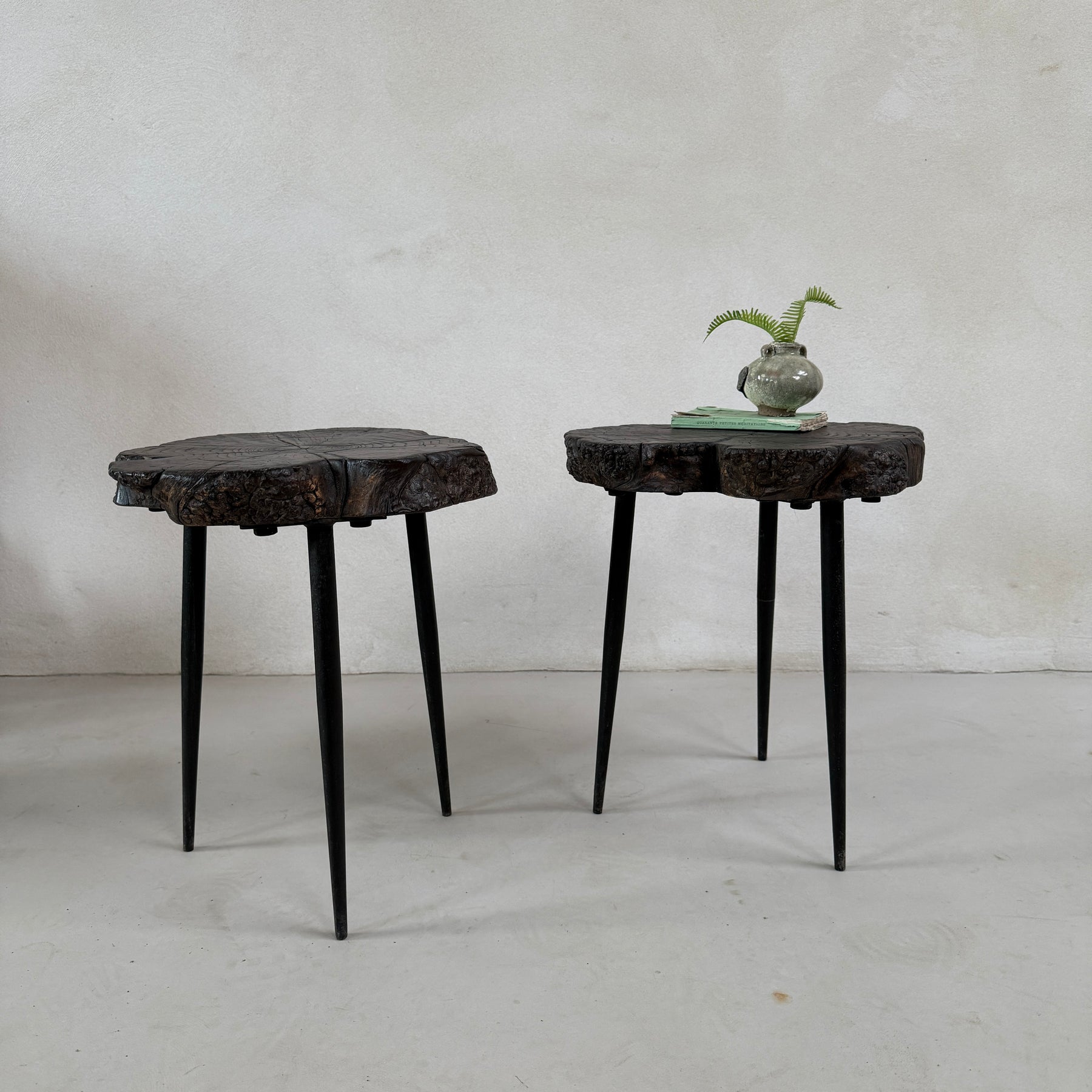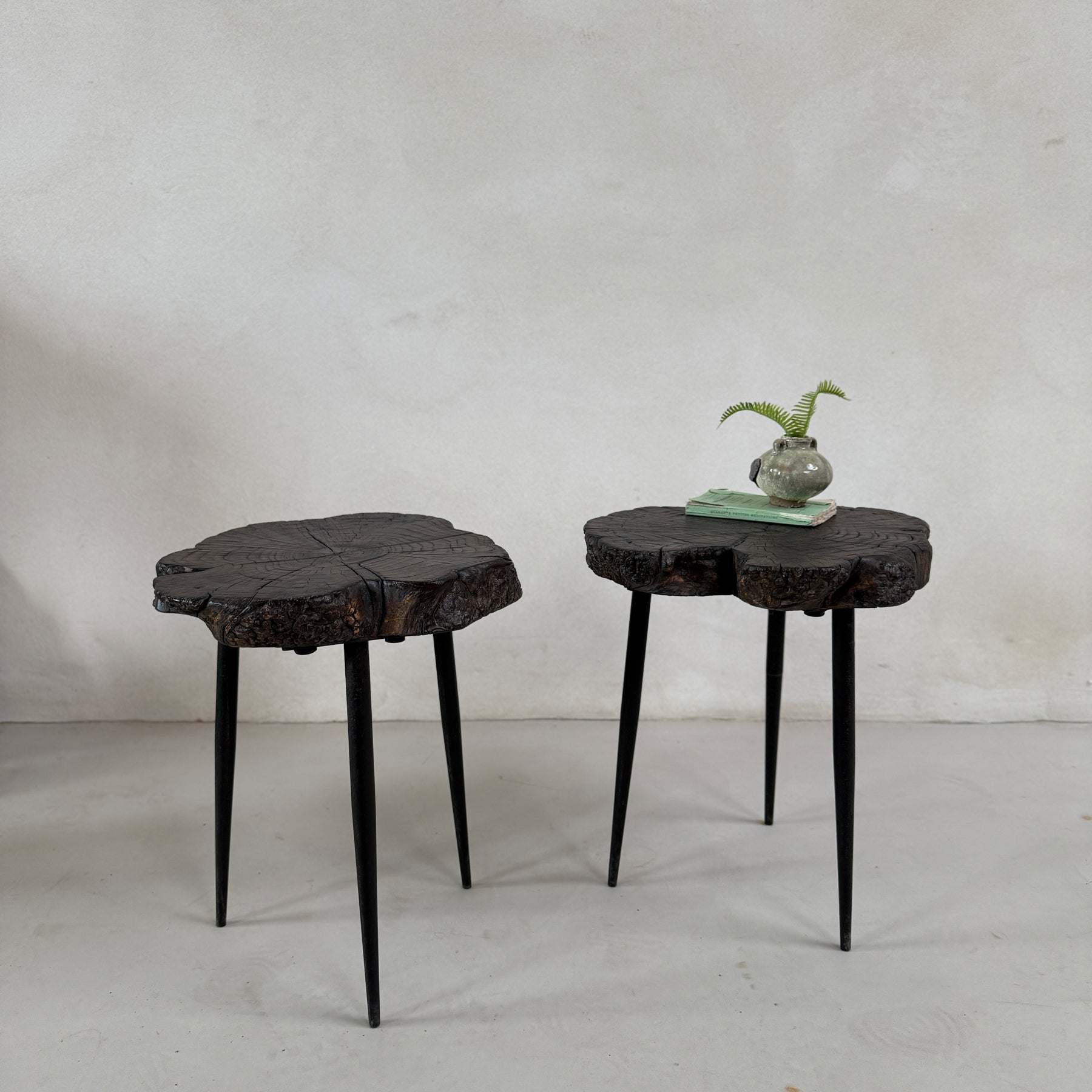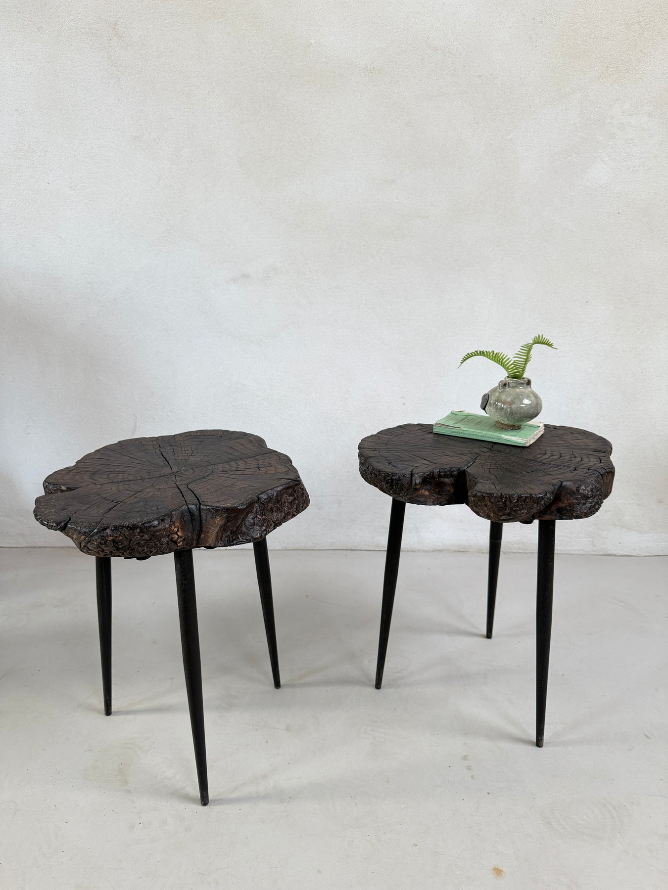 A stunning pair of small side tables made from ancient burr walnut - hundreds of years old and now salvaged and refashioned as a totally unique pair of tables.