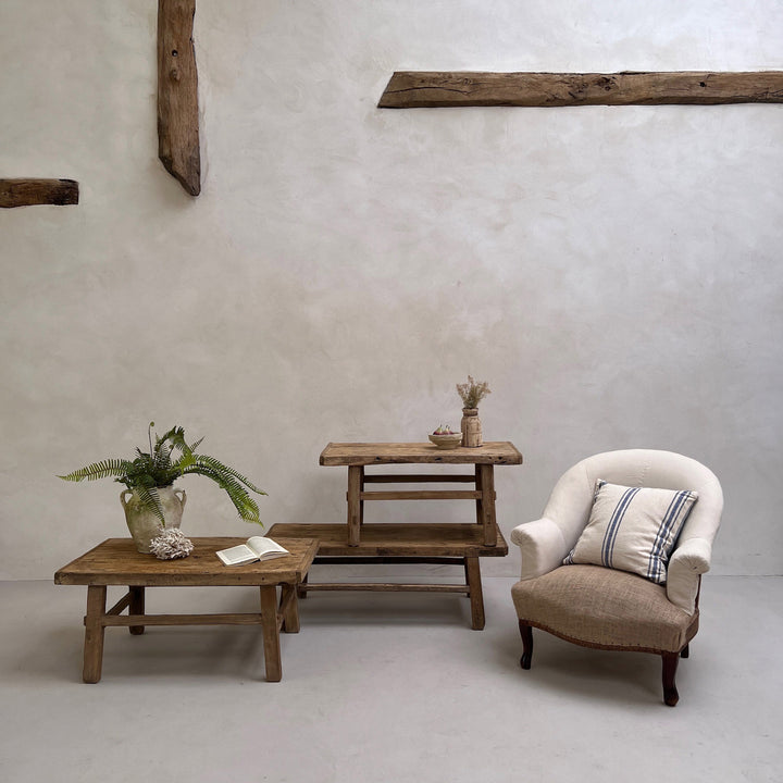 Our beautiful antique coffee table have the most wonderful rustic weathered tops.